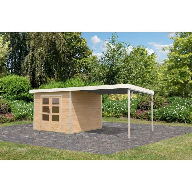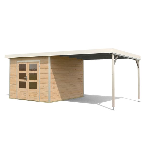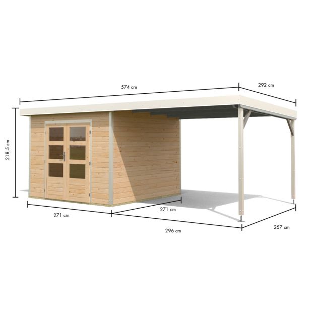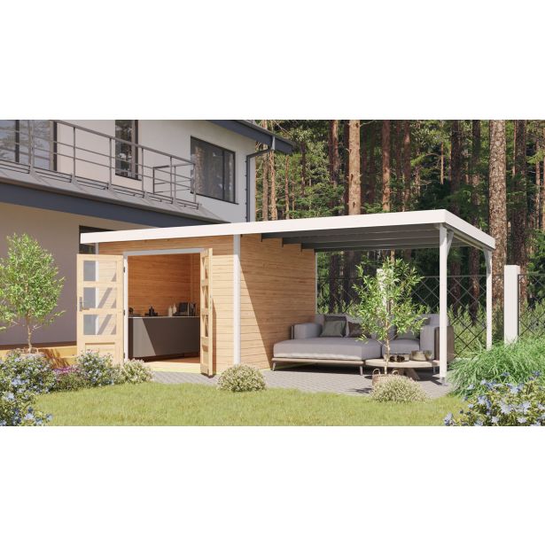 Odkrijte kovinsko-leseno vrtno hišo Karibu – edinstveno hibridno vrtno hišo , ki združuje prednosti dveh svetov surovin. Z impresivno debelino stene 28 mm in 0,75 mm debelimi kovinskimi komponentami ponuja nepremagljive prednosti izdelka.