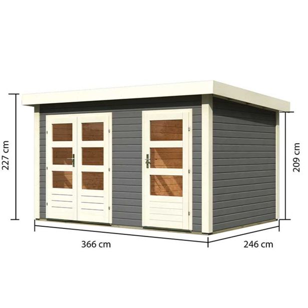 Vrtna hiška je izdelana iz nordijske smreke. Namestitev je poenostavljena s sistemom vtičev in vijakov. Z razdelitvijo prostora vam vrtna hiša daje veliko svobode pri oblikovanju za vaše individualne potrebe – naj bo to prostor za shranjevanje, prostor za sedenje, delavnica ali soba za hobije – vašim zamislim ni omejitev.