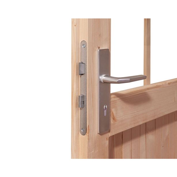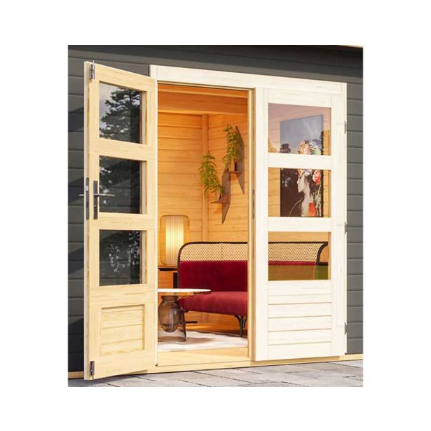 Štirje stekleni izrezi za svetlobo na dvokrilnih vratih in tisti na enokrilnih vratih zagotavljajo dovolj dnevne svetlobe v vaši novi vrtni hišici. Vaša vrtna hiška je varno zaklenjena s cilindrično ključavnico in tremi pripadajočimi ključi na vrata. Naj bo lesena vrtna hiša Karibu Schönbuch 1 vaša nova vrtna hiša še danes!