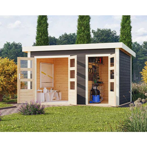 Iščete vrtno hišo z dvema sobama? Potem je Karibu lesena vrtna hiša Schönbuch 1 dobra izbira.