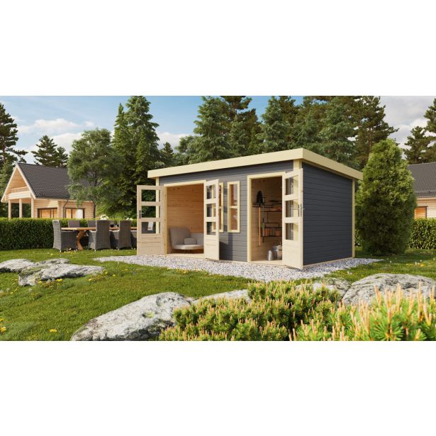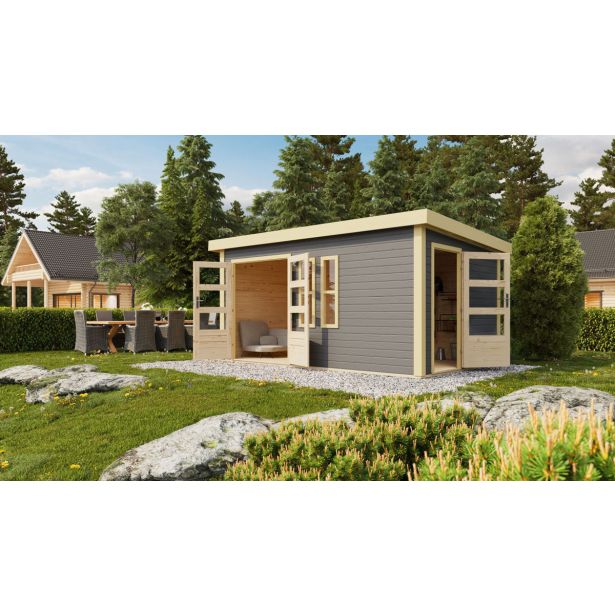LESENA VRTNA HIŠKA KARIBU SCHÖNBUCH 2 228X426X276 SIVA