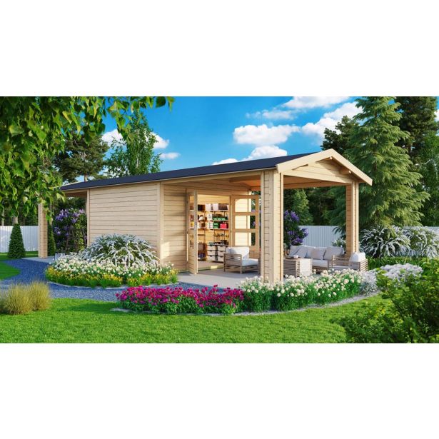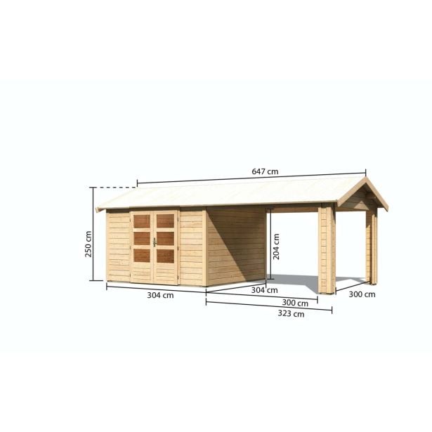 LESENA VRTNA HIŠKA KARIBU THERES 7 S TERASO 300X250X300+320 LES 28MM
