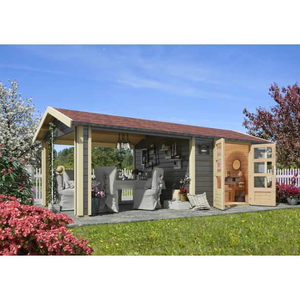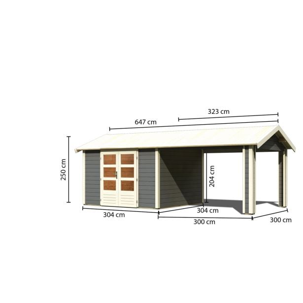 LESENA VRTNA HIŠKA KARIBU THERES 7 S TERASO 300X250X300+320 SIV 28MM