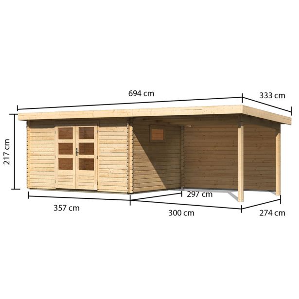 LESENA VRTNA HIŠKA KARIBU TRITTAU 4+ PODALJŠEK STREHE 3.3 M + ZADNJA