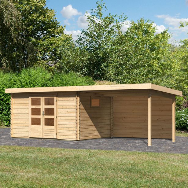 Lesena vrtna hiša Trittau 4 – s patentiranim kotnim priključkom 6-Plus