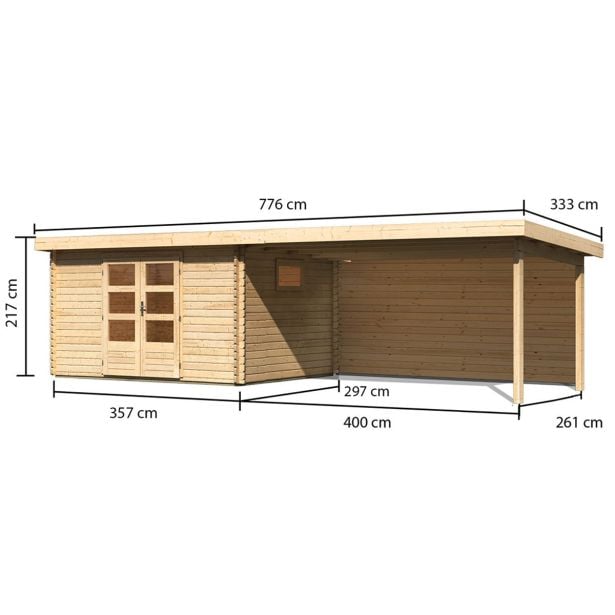 LESENA VRTNA HIŠKA KARIBU TRITTAU 4 + PODALJŠEK STREHE 4.4M+ZADNJA STENA