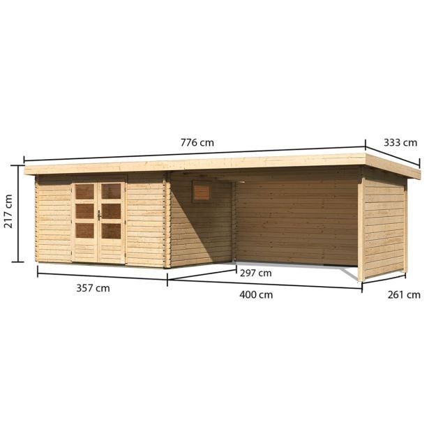 LESENA VRTNA HIŠKA KARIBU TRITTAU 4+ PODALJŠEK STREHE 4.4M+ZADNJA STENA