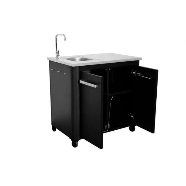 Opremljena je tudi s kljukicami za možnost obešanja kuhinjskih krp in drugih potrebščin.