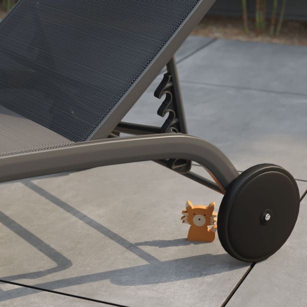 LEŽALNIK IZ TEKSTILENA NATERIAL LYRA II S KOLESI ANTRACIT ALU, TEKSTILEN