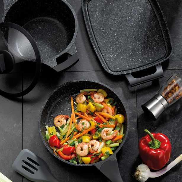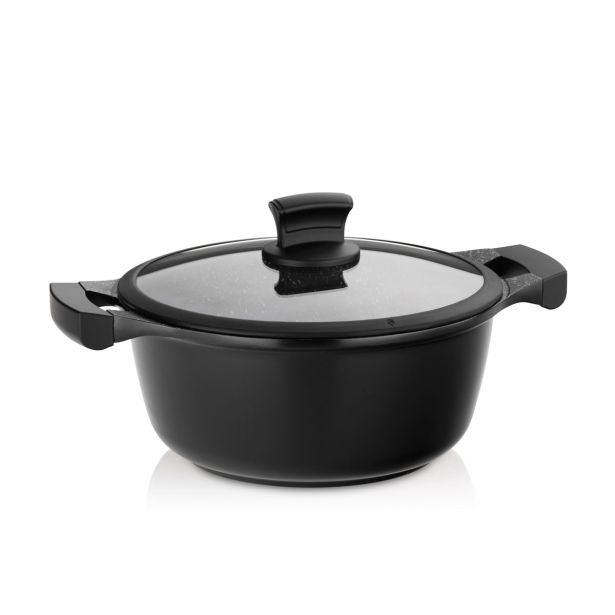 Lonec Stella Nova s ??pokrovom iz litega aluminija, prostornine 3,5L in premera 24 cm, je odlična izbira za vse ljubitelje kuhanja, ki želijo izpopolniti svoje kulinarične sposobnosti. Ta lonec črne barve ne bo samo estetsko obogatil vaše kuhinje, temveč bo poskrbel tudi za vrhunsko delovanje pri pripravi obrokov. Ena od ključnih lastnosti tega lonca je posebna površinska obdelava, ki omogoča sistem za nadzor olja. Ta inovativen pristop vam omogoča, da zmanjšate količino uporabljenega olja ali maščobe, hkrati pa uživate v enakomernem namazu. Robustna prevleka proti prijemanju zagotavlja enostavno serviranje, skrajša čas čiščenja in omogoča pripravo bolj zdravih obrokov. Dno lonca je opremljeno z energijsko varčnim podstavkom iz nerjavečega jekla, ki občutno skrajša čas segrevanja. Zaradi te funkcije je lonec združljiv z vsemi vrstami štedilnikov, vključno z indukcijskimi kuhališči, zaradi česar je izjemno vsestranska možnost za vsako kuhinjo. S tem loncem postane kuhanje preprosto in učinkovito. Ne glede na to, ali pripravljate okusne enolončnice, juhe ali zelenjavo, njegova velika zmogljivost in robustna konstrukcija zagotavljata popolne rezultate vsakič.