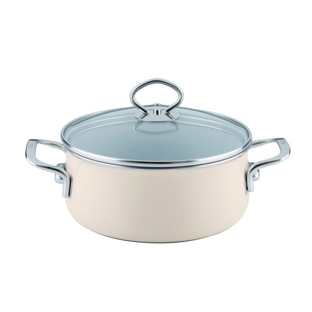 Kozica RIESS 20 cm. Klasična krem barva nudi eleganco v moderni kuhinji. Specialna emajlirana posoda z ekstra ojačanim dnom, ki garantirea hitro segrevanje hrane. Emajlirana posoda predstavlja zdravo kuhanje in izpolnjuje vse sodobne zahteve, kot so varčevanje z energijo, skrb za ekologijo. Emajl pomeni zdrav način kuhanja, odporen je proti vrezninam in praskam, ne vpliva na okus in deluje antibakterijsko. Posoda je odporna na visoke temprature in primerna za pranje v pomivalnem stroju.