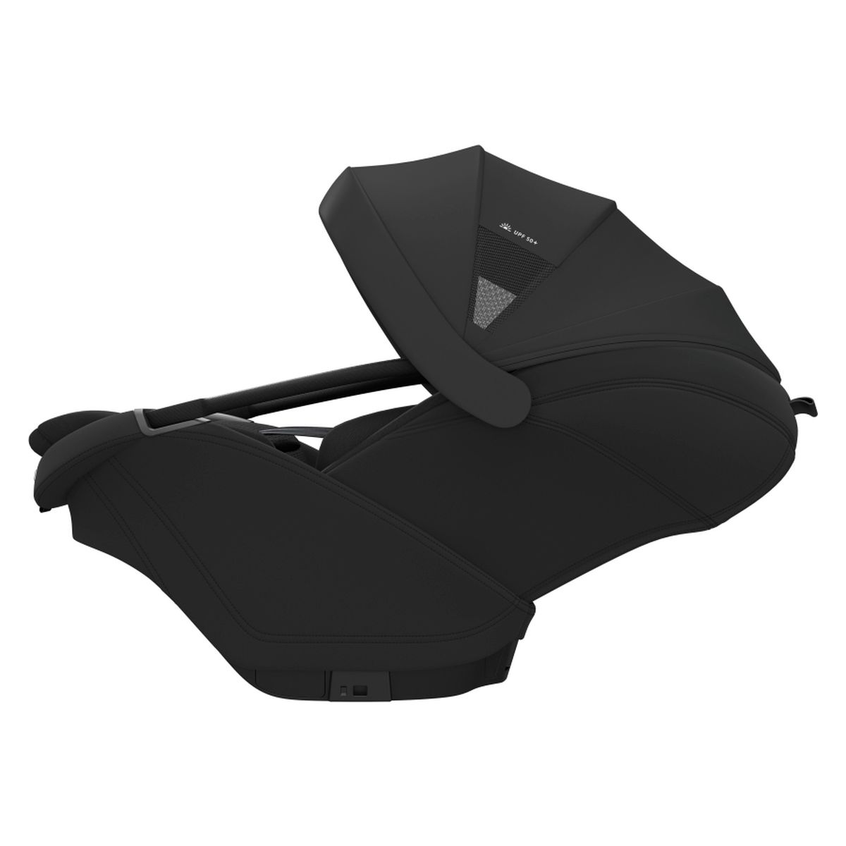 Velika streha SPF 50+ ščiti otroka pred soncem, vetrom in dežjem. Priložen vložek za novorojenčka (40–60 cm) zagotavlja varno in udobno prileganje že od rojstva.