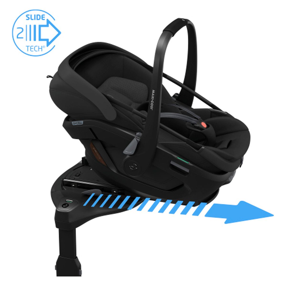 V kombinaciji z osnovo FamilyFix Slide Pro tehnologija SLIDETECH®2 omogoča, da se sedež izvleče iz avtomobila do 27 cm, 360° vrtenje pa olajša nameščanje in jemanje otroka iz sedeža. Sedež ostane odprt in neoviran za vsakodnevno uporabo.
