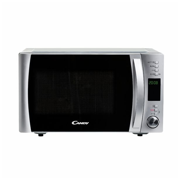 Mikrovalovna pečica Candy CMXG 25 DCS v srebrni barvi ima prostornino 25 l in omogoča tri načine priprave hrane.