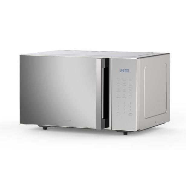 Je izjemno močan, odporen na praske, zasnovan za varnost in zelo vsestranski. 20L volumen pečice, 700W moč mikrovalov, 800W moč žara , 11 stopenj moči, LED prikazovalnik, Timer do 99 minut, Elektronsko upravljanje, AUTO menu 7 pred nastavljenih programov, Prikaz ure, Avtomatsko odtaljevanje, Otroška zaščita, Dimenzija: ( ŠxVxG): 45,5 x 26,1 x 32,6cm”