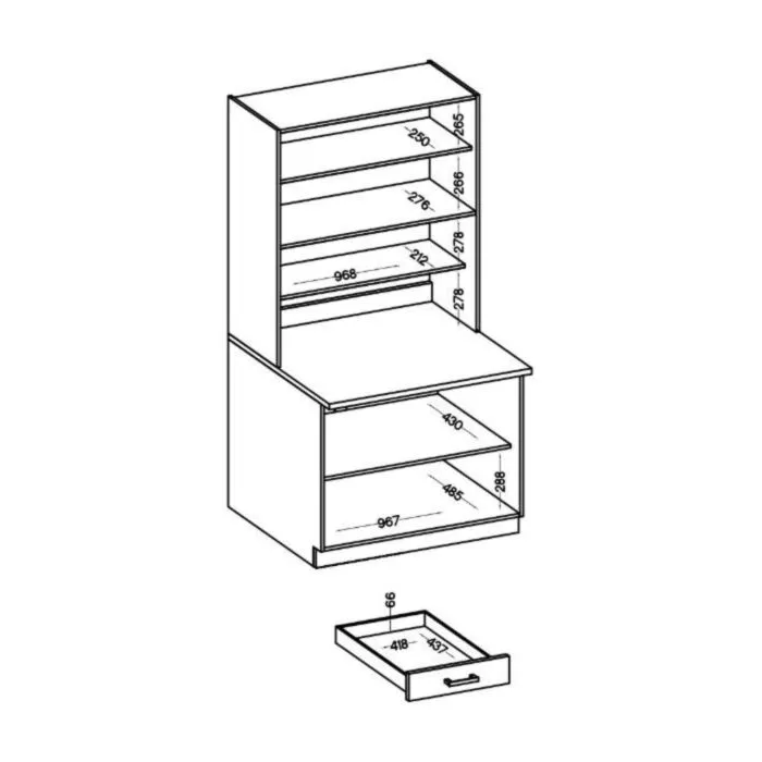 – Zgornja dvojna omara: V:58 cm x Š: 99,9 cm x G: 30,6 cm