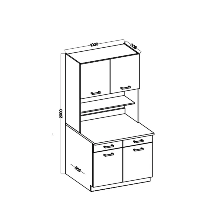 – Celotna kuhinja: V: 200 cm x Š: 100 cm x G: 60 cm