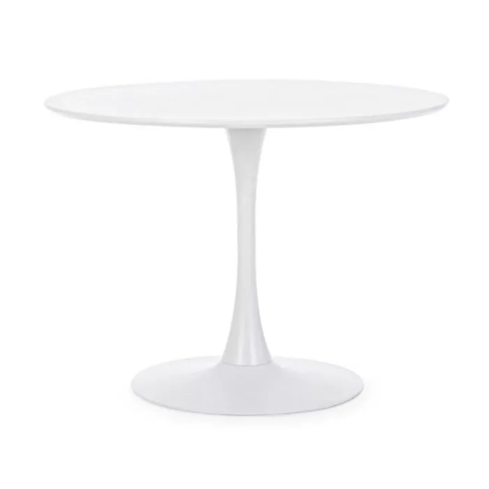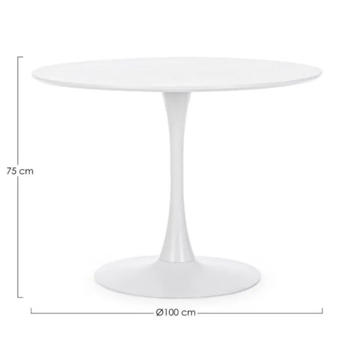 Miza BLOOM D100 bela je elegantna in preprosta miza. Mizna plošča je narejena iz MDF-ja s kovinskimi nogami, v beli barvi.