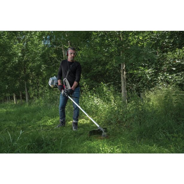 Večnamenska, zelo lahka in priročna motorna kosa za neodvisno delo na terenu z 2-taktnim motorjem najnovejše generacije z lahkim zagonom in močjo 0,9 kW. 2-taktni motor s preprostim zagonom na poteg, dvakrat uležajeno ročično gredjo in robustnim kotnim gonilom se odlikuje z dolgo življenjsko dobo. Kovinska zaščita rezervoarja za gorivo daje veliko varnost in dolgo življenjsko dobo. Preprosto upravljanje s prijetno oblazinjenim ročajem in zaprtim obročastim ročajem z naslonom. Glava z nitko Fast&Easy. Preprosto vdevanje in navijanje nitke brez odpiranja glave za nitko.