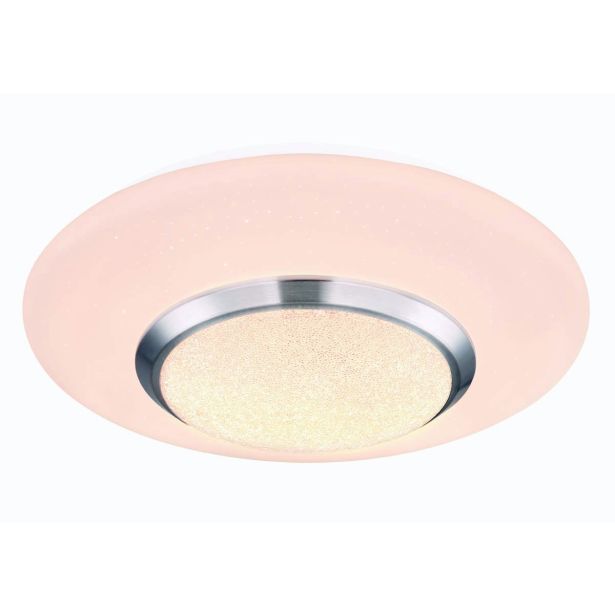 Ta lepota ustvarja neverjetne svetlobne učinke v vašem domu. V notranjosti te svetilke so plastični kristali, tako da se svetloba v beli stropni svetilki impresivno odbija. Stropna svetilka izgleda zelo elegantno tudi, ko je ugasnjena.