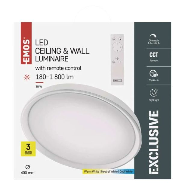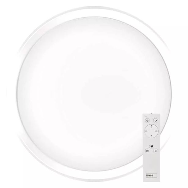 Nadgradna stropna svetilka znamke Emos Ilvi je 30W in ima možnost zatemnitve. Upravljate jo s pomočjo daljinskega upravljalnika.