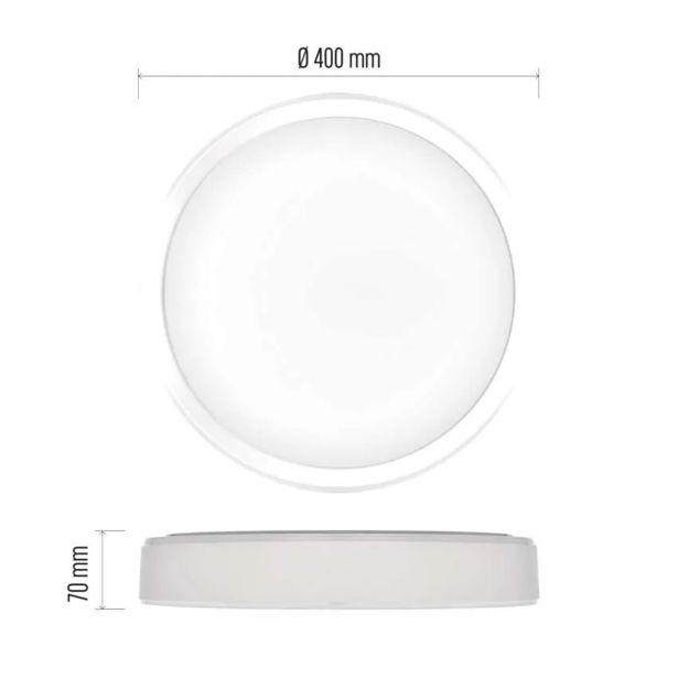 vir svetlobe: LED, prihodna moč: 30 W, nadomestilo za žarnico: 115 W, zaščita: IP20, svetlobni tok: 180?1 800 lm, temperatura kromatičnosti: 2 700?6 500 K, barva svetlobe: topla bela/hladna bela, oblika: krog, material ohišja: plastika (PS) + jeklena pločevina, material difuzorja: plastika (PMMA), tip difuzorja: mlečen, indeks barvne reprodukcije (CRI): Ra > 80, kot svetilnosti: 120°, način montaže: nadometno, dimenzije: premer 400 × 70 mm, možnost zatemnjevanja, barva ohišja: bela, frekvenca: 50/60 Hz, napetost: 220-240 V, tok: 230 mA, kategorija: EXCLUSIVE, linija: ILVI, garancijska doba: 3 leta, prodajna embalaža: 1 kos, škatla, življenjska doba: 30 000 ur, faktor: > 0,9, svetlobna učinkovitost: 60 lm/W, material LGP: ne navaja se, flicker-free, izhodni tok iz vira: 175 mA, energetski razred (od 1.9.2021): E