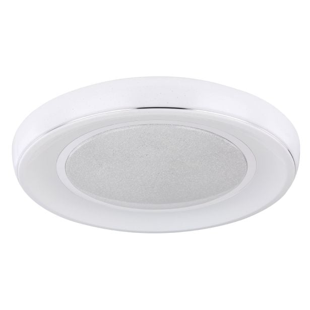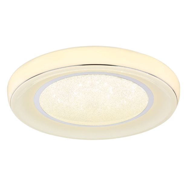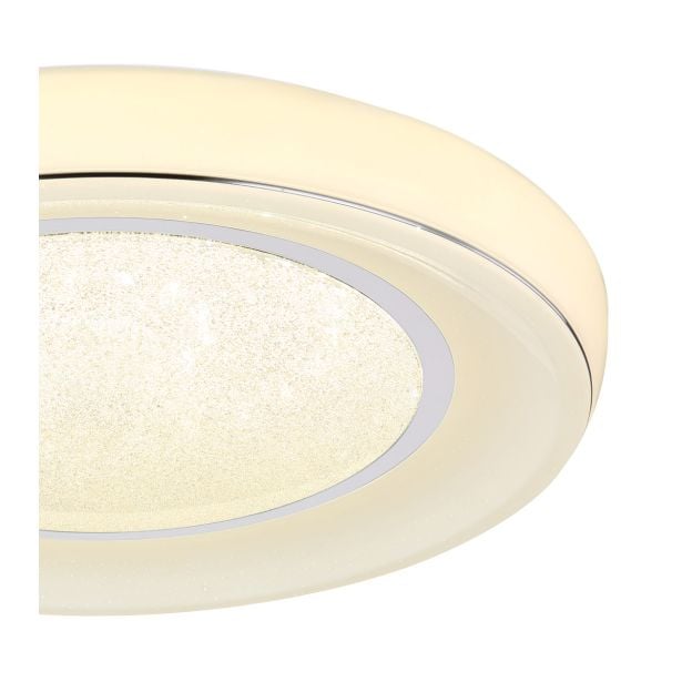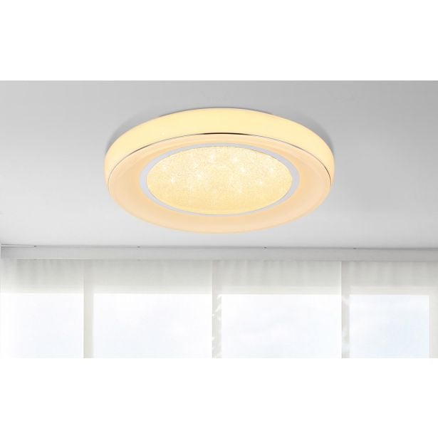 Okrogel (?66 cm) opalni senčnik zagotavlja vznemirljivo svetlobo z razpoložljivimi bleščečimi plastičnimi kristali. S priloženim daljinskim upravljalnikom enostavno in priročno zatemnite svetilko ter postopoma prilagajate in fiksirate barvo svetlobe od tople bele (3000 Klevinov) do hladno bele (6000 Kelvinov).