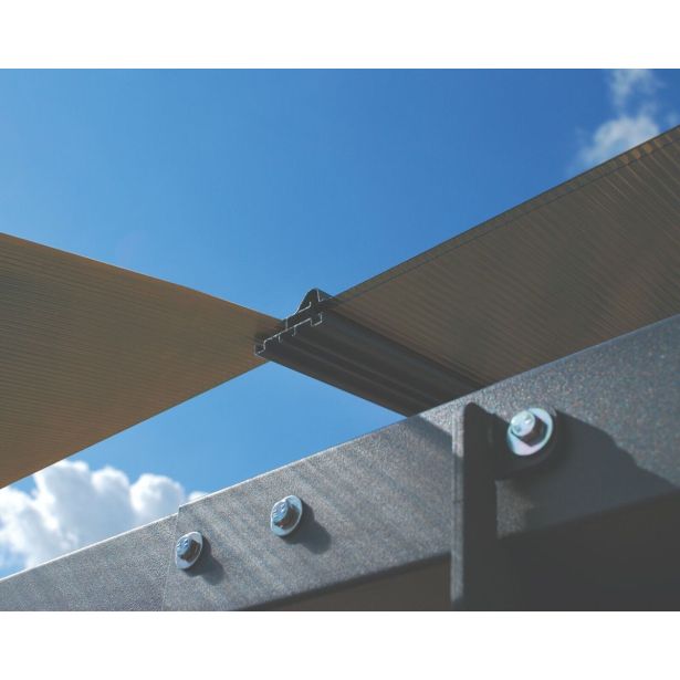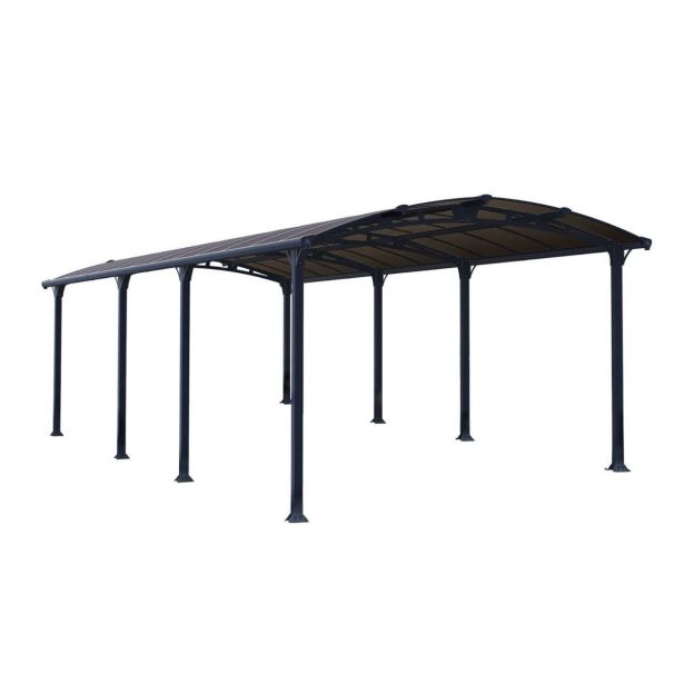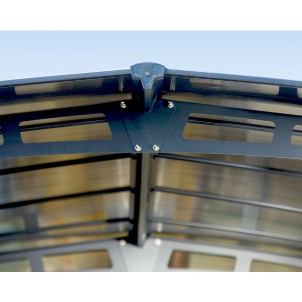 Kovinski nadstrešek Palram Arcadia 8500 v temno sivi barvi. Streha nadstreška je izdelana iz polikarbonatnega materiala in je 100% UV zaščitena. Dolžina 858 cm, širina 359 cm, višina 242 cm.