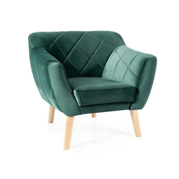 Naslonjač KATJANA 2 z nežnimi šivi in modernim značajem, je kakovosten kos pohištva, ki popestri vaš prostor. Narejen je iz prijetne žametne tkanine. S svojo barvo in obliko, da poseben čar elegance. Dobavljiv je v različnih barvah. Nogice so narejene iz bukovega lesa v barvi bukev. Pohištvo se odlično poda v dnevno sobo, salon, pa tudi v javne prostore – hotelske restavracije, čakalnice ali pisarniške prostore.