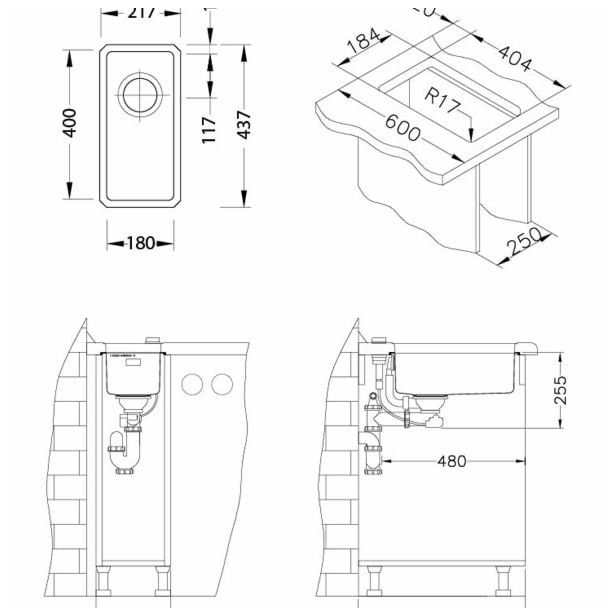 NERJAVNO POMIVALNO KORITO ALVEUS KOMBINO 10, SATIN 180X400 MM
