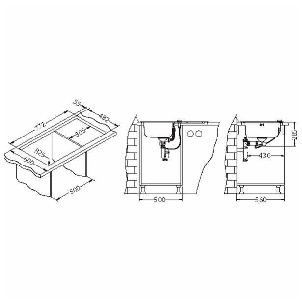 NERJAVNO POMIVALNO KORITO ALVEUS LINE 80, LEINEN 790X500 MM