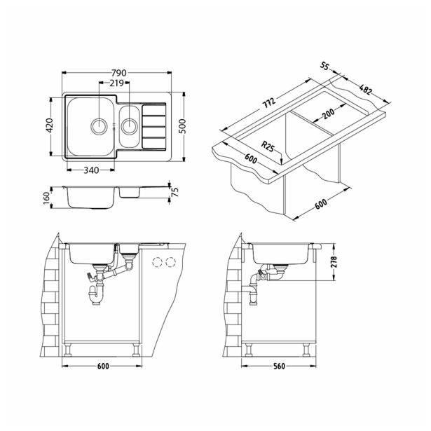 NERJAVNO POMIVALNO KORITO ALVEUS LINE MAXIM 70, SATIN 790X500 MM