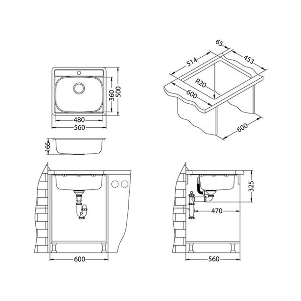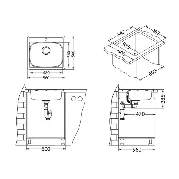 Prostorna posoda nudi dovolj prostora za preprosto in udobno rokovanje okoli vode, večji radij posode pa poskrbi za enostavno in hitro čiščenje. Glede na to, kateri izgled bi želeli doseči v vaši kuhinji lahko izbirate med različnimi načini vgradnje.