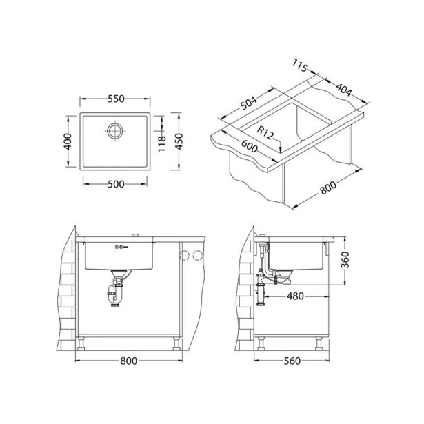NERJAVNO POMIVALNO KORITO ALVEUS QUADRIX 50, 500X400X200