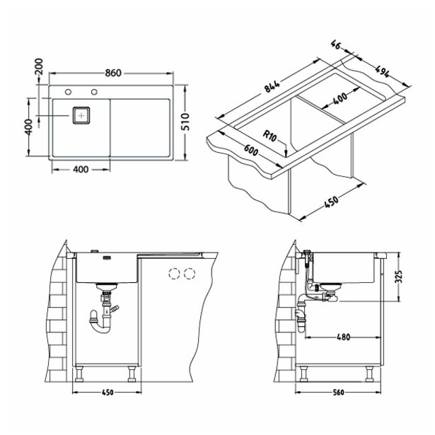 NERJAVNO POMIVALNO KORITO ALVEUS STYLUX 50, DESNI, SATIN 860X510 MM