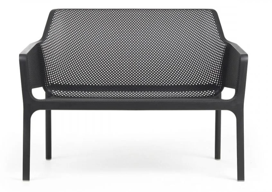 Vrtna klop Net Bench, monoblok, iz enotno barvane polipropilenske smole, ojačane s steklenimi vlakni, z UV dodatki, mat zaključek, opremljena s protizdrsnimi nogicami