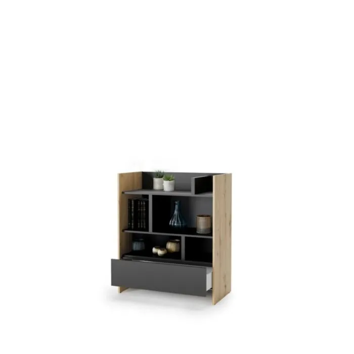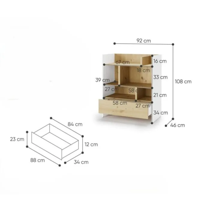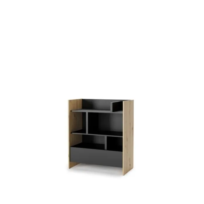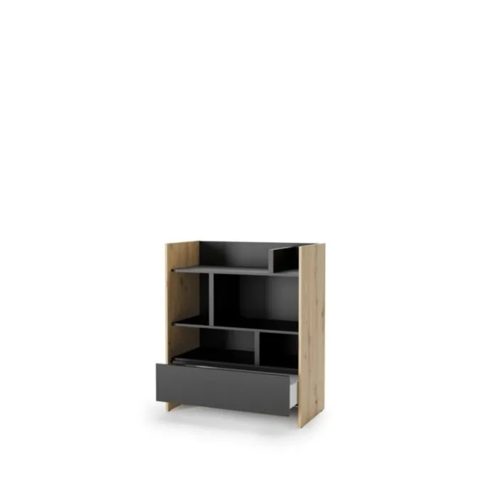 Nizki regal za posteljo v omari METULJ je eleganten in prostoren. Prostorna notranjost in razporeditev ponuja veliko prostora za oblačila, dodatke in druge potrebščine.