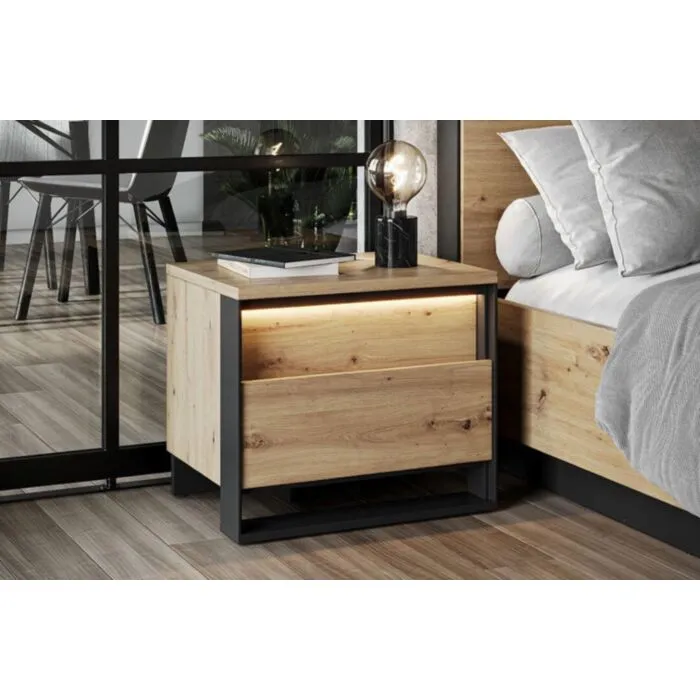Nočna omarica KVIN ima dva prostorna predala, LED osvetlitev ter privlačne, izvirne barve. Narejena je iz kvalitetne laminirane plošče s zaključnimi ABS robovi.