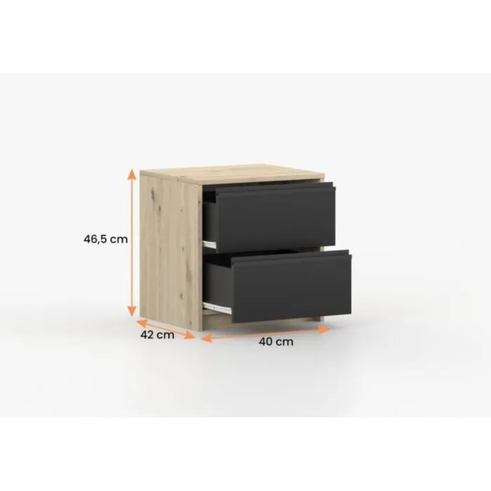 Nočna omarica LANZAROTE je moderen kos pohištva. Opremljena je z dvema prostornima predaloma. Zaradi svoje barve in kompaktne dimenzije se prilega v vsak prostor. Če želiste dodatno eleganco in funkcionalnost je nočna omarica LANZAROTE odličen kos pohištva za vas.