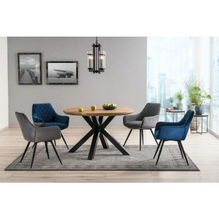 Okrogla miza TIME je praktična v jedilnih, dnevnih ali pa vrtnih prostorih vašega doma. Njena preprosta eleganca gladkih linij furnirja predstavlja sodoben pristop h klasični ureditvi doma. Je zelo stabilna in vsestransko uporabna miza. Mizna plošča je izdelana iz furnirja, noge pa iz kovine v črni mat barvi.