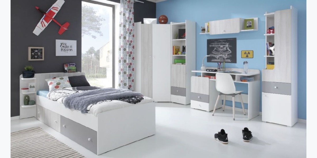 Enodelna omara s policami iz kolekcije Como je evropske izdelave. Manjša omara nudi veliko prostora za shranjevanje. Sestavljata jo dva predala, police in ena vrata. Nežne nevtralne barve serije so primerne tako za fante kot za dekleta. Pohištvo Como se lahko uporabi tudi kot pisarna ali le posamezni elementi.
