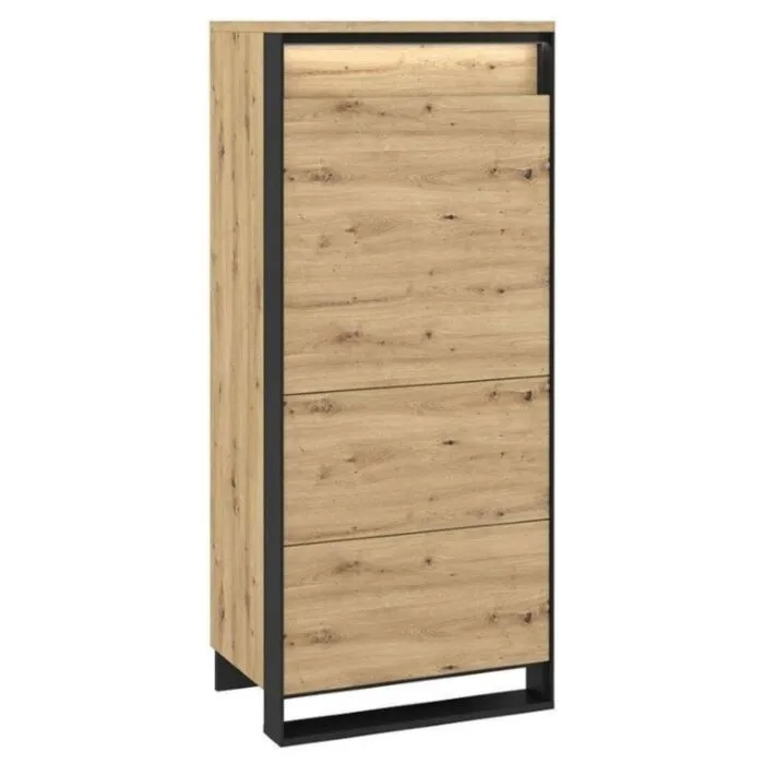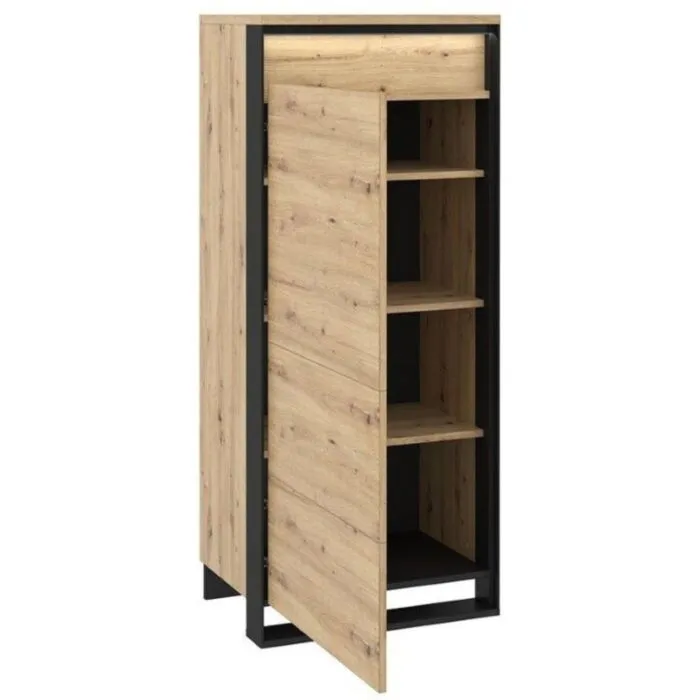 Elegantna omara KVIN ima 4 globoke police. Tridimenzionalni značaj front je dodatno poudarila LED osvetlitev (prisotna v kompletu).