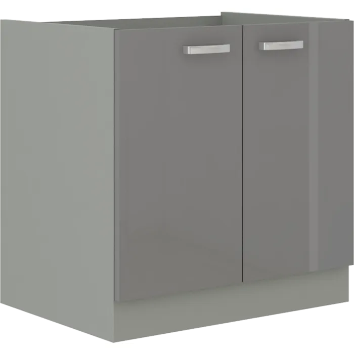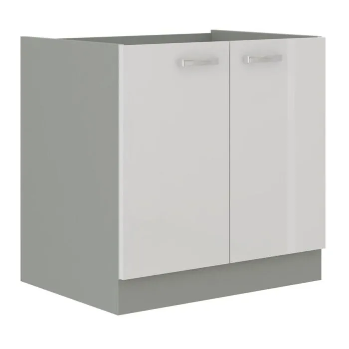 Omara za pomivalno korito ELITE 80D je sestavljena iz fronte iz MDF plošče, debeline 16 mm, robovi so iz ABS 1 mm. Korpus je narejen iz laminirane plošče, debeline 16 mm, robovi so iz melamina. Kuhinjski element je na voljo v treh barvah visokega sijaja. V komentarju dopišete, katero barvno kombinacijo želite. Kuhinjski elementi imajo sistem mehkega zapiranja.