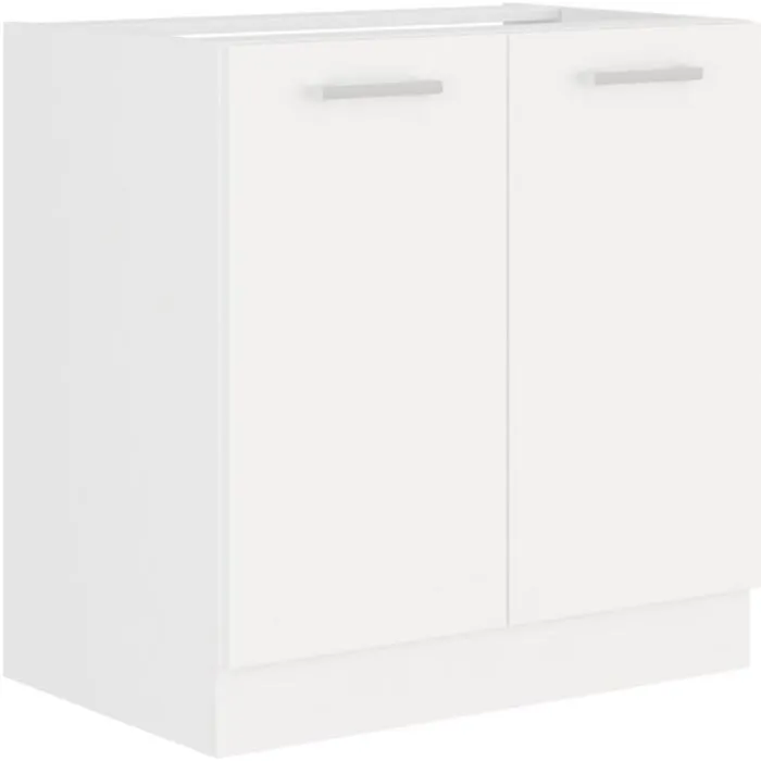 Omara za korito STELLA 80D je sestavljena iz fronte iz MDF plošče, debeline 16 mm, robovi so iz ABS 1,7 mm. Korpus je narejen iz laminirane plošče, debeline 16 mm, robovi so iz melamina. Na voljo je v beli barvi korpusa in front.