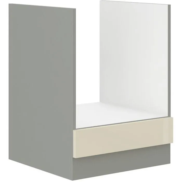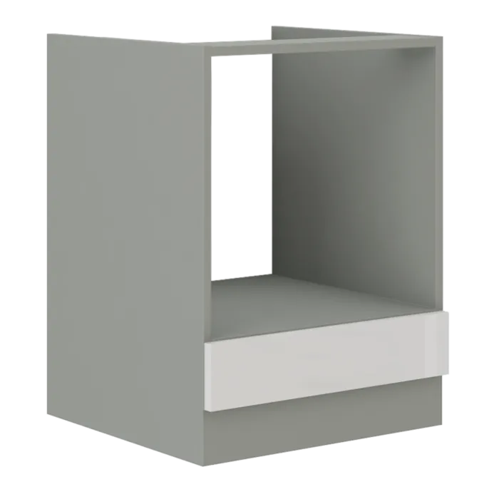 Omara za vgradno pečico ELITE 60D je sestavljena iz fronte iz MDF plošče, debeline 16 mm, robovi so iz ABS 1 mm. Korpus je narejen iz laminirane plošče, debeline 16 mm, robovi so iz melamina. Kuhinjski element je na voljo v treh barvah visokega sijaja. V komentarju dopišete, katero barvno kombinacijo želite.