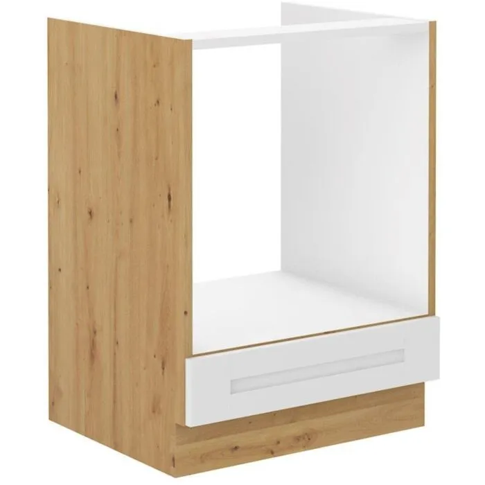 Omara za vgradno pečico VANESA 60D je sestavljena iz MDF plošče, debeline 16 mm, robovi so iz ABS 1 mm. Korpus je narejen iz laminirane plošče, debeline 16 mm, robovi so iz melamina. Kuhinjski element je na voljo v beli / hrast barvi.