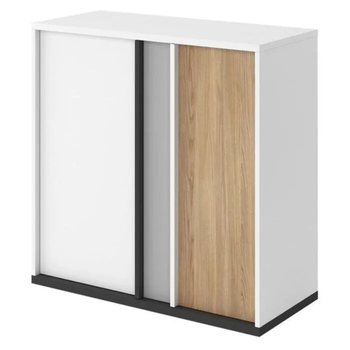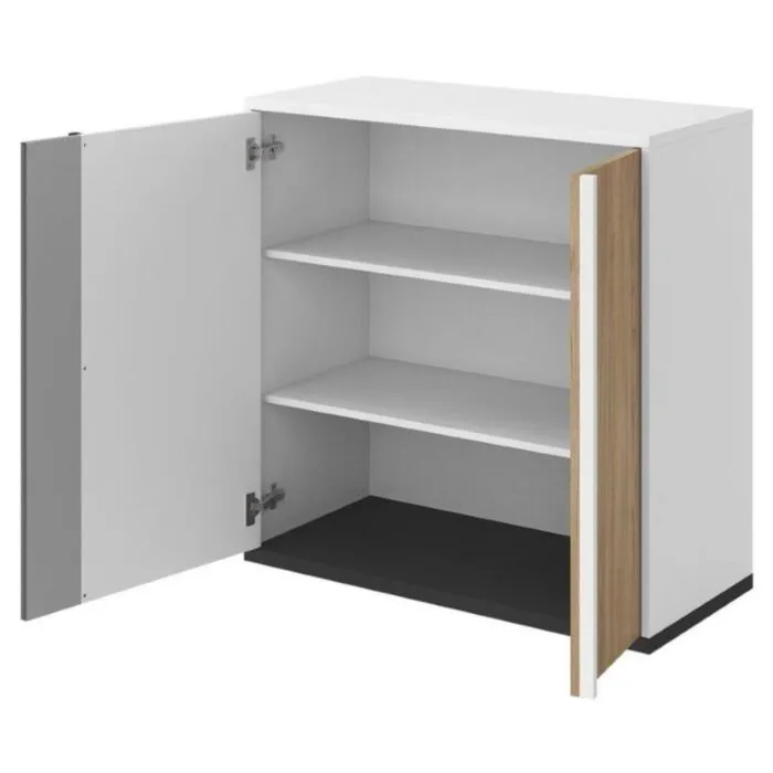 Nizka dvokrilna omarica MELI je modernega videza. Primerna je za vsak prostor, saj ima brezčasen dizajn.