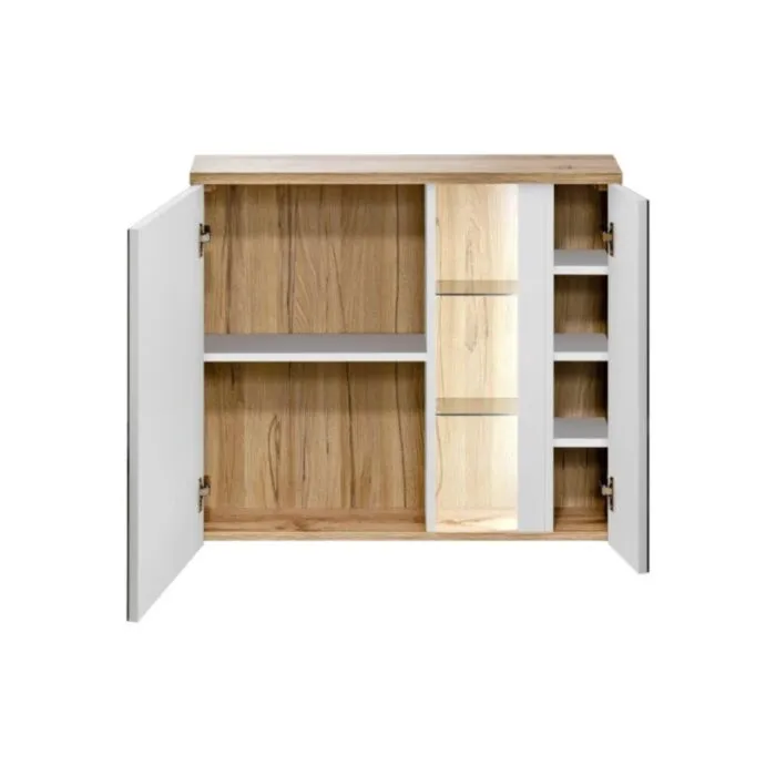 Omarica z ogledalom BAM 80G bela je sodobna in elegantna. Narejena je iz kvalitetnih materialov in ima visoko odpornost na praske, tekočine in obrabo. Kopalniški element ima mehko zapiranje.