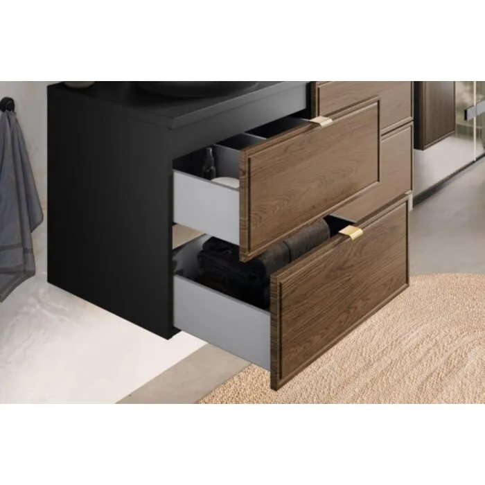 Kopalniški blok TAMY je možno naročiti v kompletu, ali pa po posameznih elementih po vaši izbiri. Omarica za umivalnik TAMY 80 je modernega dizajna. V barvi temnega hrasta s kombinacijo črne mat barve, daje eleganten videz. Izdelan je iz laminirane ter MDF plošče. Vsebuje mehko zapiranje.