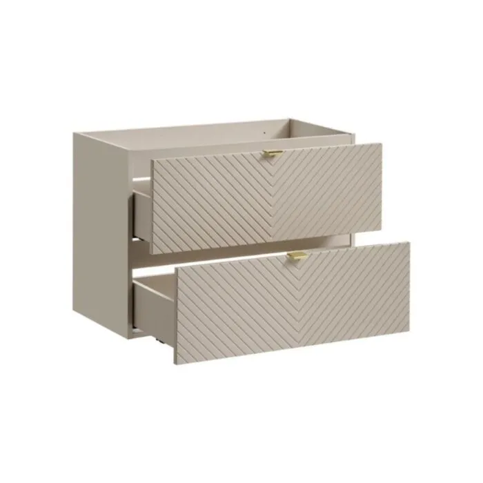 Kopalniški blok VIVERE je možno naročiti v kompletu, ali pa po posameznih elementih po vaši izbiri. Omarica za umivalnik VIVERE 80 je modernega dizajna. V kašmir barvi daje eleganten videz. Izdelana je iz laminirane ter MDF plošče. Vsebuje mehko zapiranje.